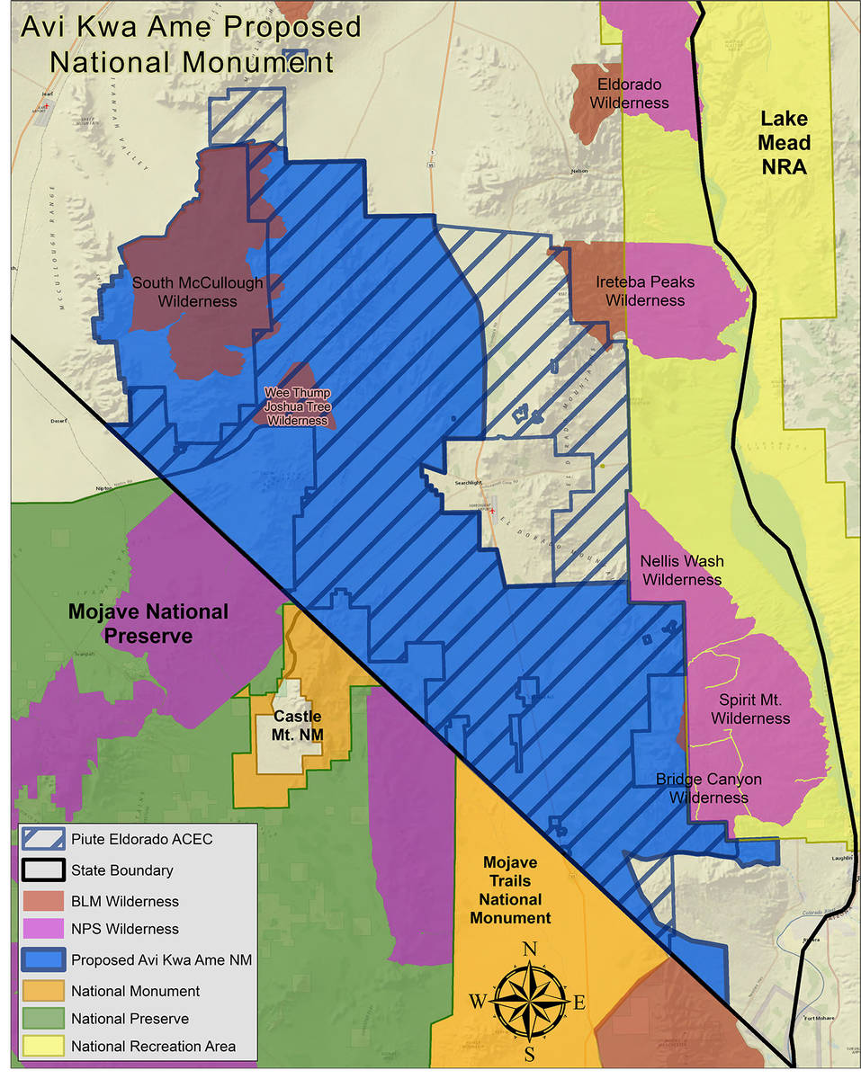 While 70 percent of the proposed lands are already part of the Paiute/Eldorado Area of Critical Environmental Concern, monument status would offer added protection from new mining claims, energy development, roads and utility lines. Yet the proponents say it would continue to be open for Native American ceremonial activities and the public’s recreational enjoyment.