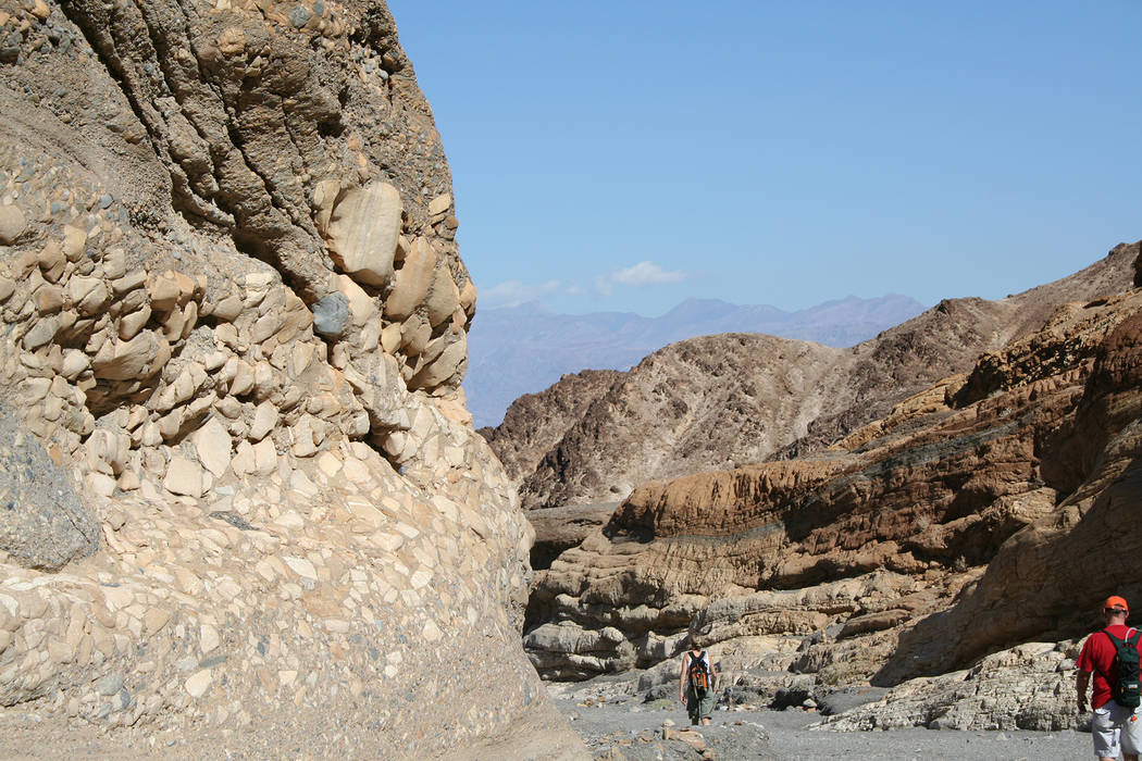Mosaic Canyon in Death Valley National Park, California, is a great hiking choice for all ages and abilities depending on how far you venture. This is a good choice if you have children along or people in your group that can’t travel very far because in this canyon just hiking one quarter of a mile you’ll experience the beauty of the place and be able to admire the natural mosaics.