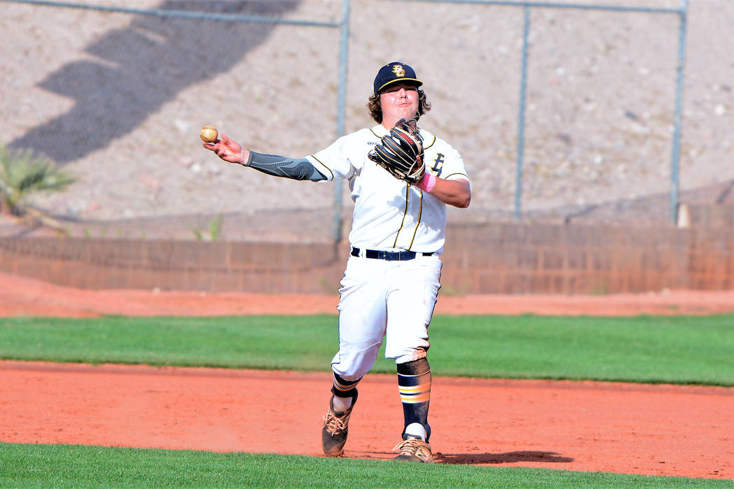 Keeping pace in the 3A Sunrise League standings, Boulder City High School baseball defeated rival Virgin Valley 12-1 on April 10.
