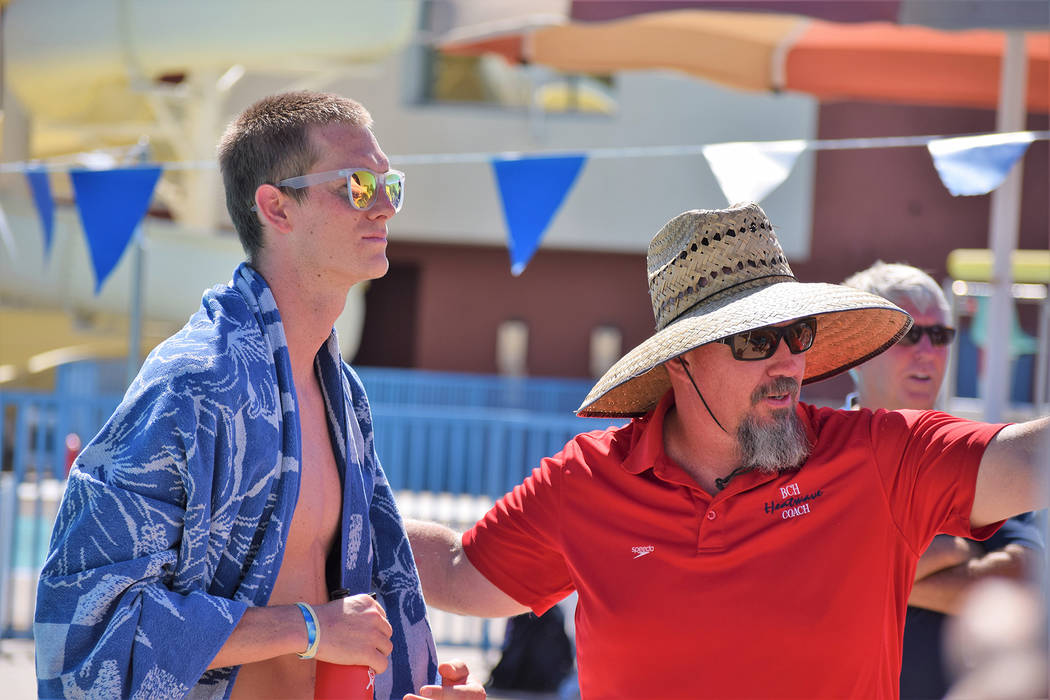 Zane Grothe, a former Heatwave swimmer and member of Team USA, returned to his hometown for a swim clinic at the Henderson Multigenerational Pool. He joined Heatwave coach Mike Polk to offer advice and swim tips.
