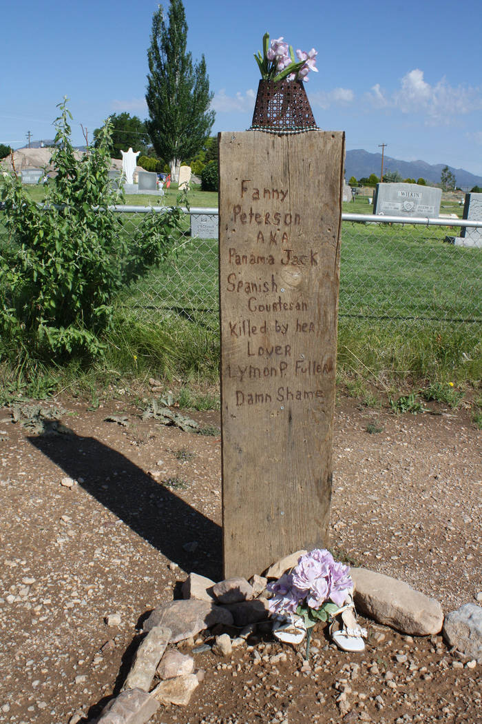 Some interesting headstones memorialize those thought to lie here. One marks the grave of gunslinger Morgan Courtney. It reads, “Morgan Courtney, 1844-1873, Feared by Some, Respected by Few, Detested by others, Shot in the back 5 times by ambush.” Another reads “Fanny Peterson AKA Panama Jack, Spanish courtesan killed by her lover Lyman P. Fuller, Damn Shame.”