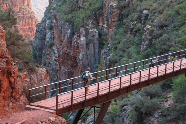 Once you leave the campground, you cross the Colorado River via the Silver Bridge, which takes you to the 9.5-mile Bright Angel Trail up to the South Rim. In the past, I have secured a camping permit at the Indian Garden Campground about halfway up this trail. Here, you can take a dip in the creek and cool off, take in a ranger program and hike out to Plateau Point, a 3-mile round trip that’s ideal at sunset.