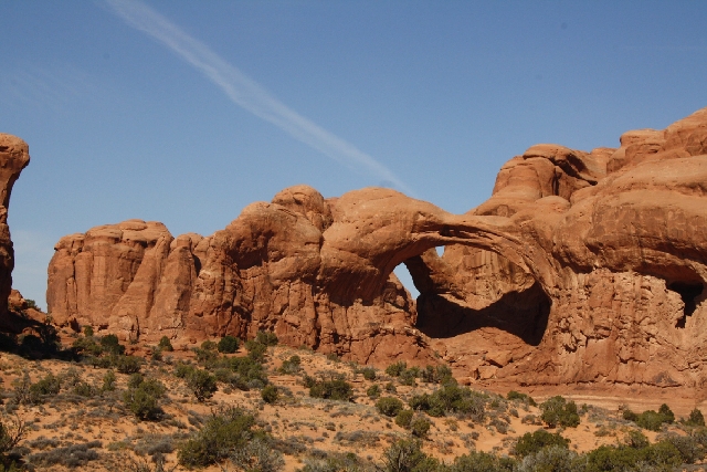 Landscape Arch is the longest in the park, and the hike to see it up close is only 1.6 miles roundtrip. It’s also easy, a mostly flat gravel trail starting in the Devils Garden parking area. The arch’s span measures more than 300 feet from base to base. It is now a mere 11 feet thick in the center. Back in 1991 a 60-foot-long piece of rock fell off the bottom of the arch. No one can predict accurately how long this arch will stand as the rock is subject to gravity and constantly eroding.
