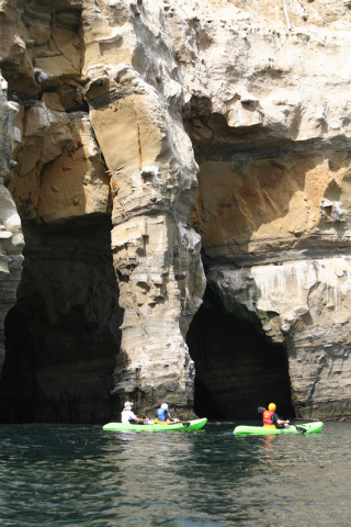 Then we drive down through ritzy La Jolla, visit the Birch Aquarium, and kayak out to the sea caves. When conditions are right you can paddle into them, adventuresome but worth it. Anytime though, you’ll enjoy seeing the harbor seals, leopard sharks and sea lions.