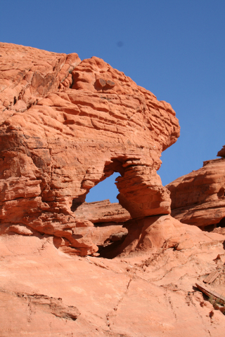 The route you take to explore the area is up to you. You will find small arches, windows, overhangs and holes in the sandstone. In the very distant past these rocks were sand dunes. Over time they turned to stone and were shaped by complex uplifting, faulting and erosion. The vibrant red and orange coloring results from oxidized iron in the rock.
