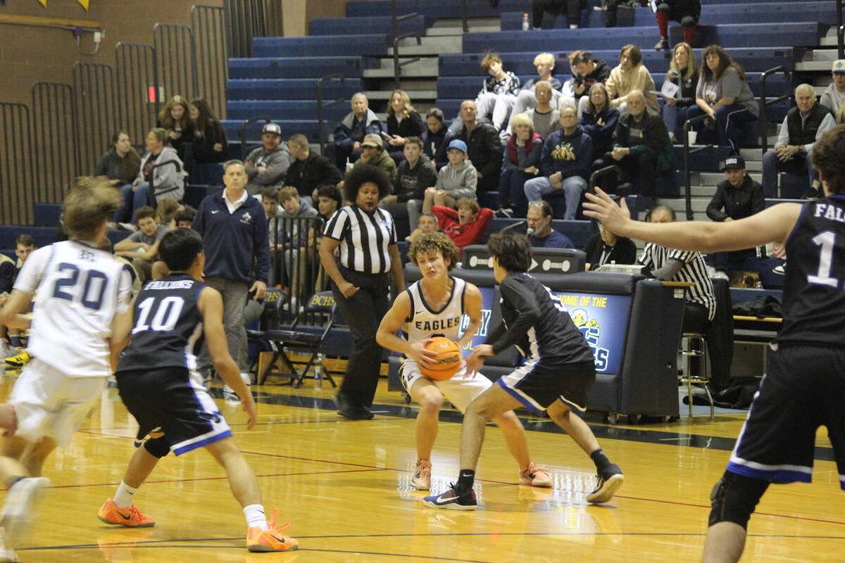 Controlling the game from the opening tip with a 16-4 first-quarter run, senior Bruce Woodbury led all scorers with 14 points and four steals. Junior Roman Rose added 11 points with five rebounds and three assists.