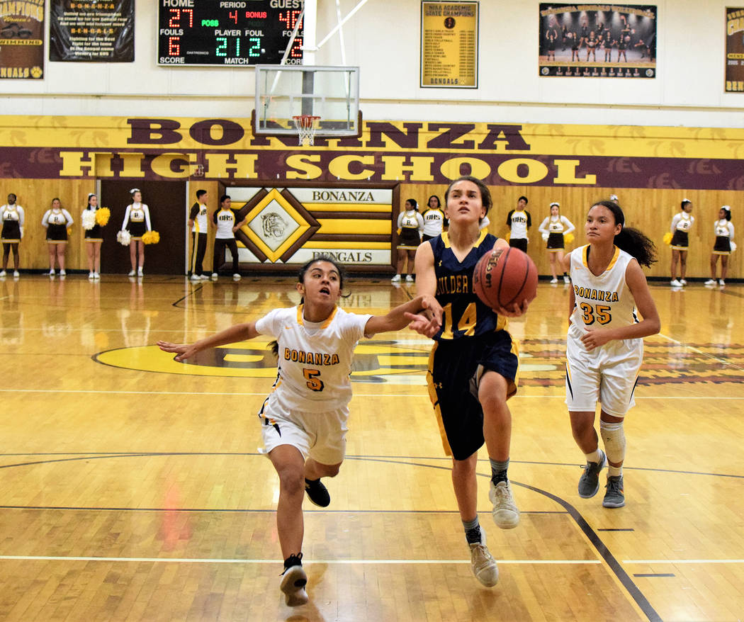 The Boulder City High School girls basketball team picked up a road victory Monday, Dec. 3, defeating 4A Bonanza 57-38.