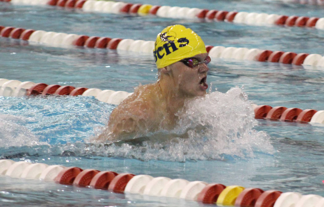 Keeping it close despite the perception of being overmatched, junior A.J. Pouch won the Eagles’ lone two individual events. Setting a pair of state meet records, Pouch placed first in the 100-yard breaststroke (55.35 seconds) and 200-yard individual medley (1:50.46).