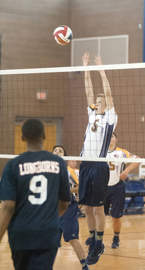 Preston Jorgensen advanced Boulder City High School’s boys freshman volleyball team to 8-2 on the season, sealing a 25-15, 25-16 victory Friday against Legacy with a game-ending kill.