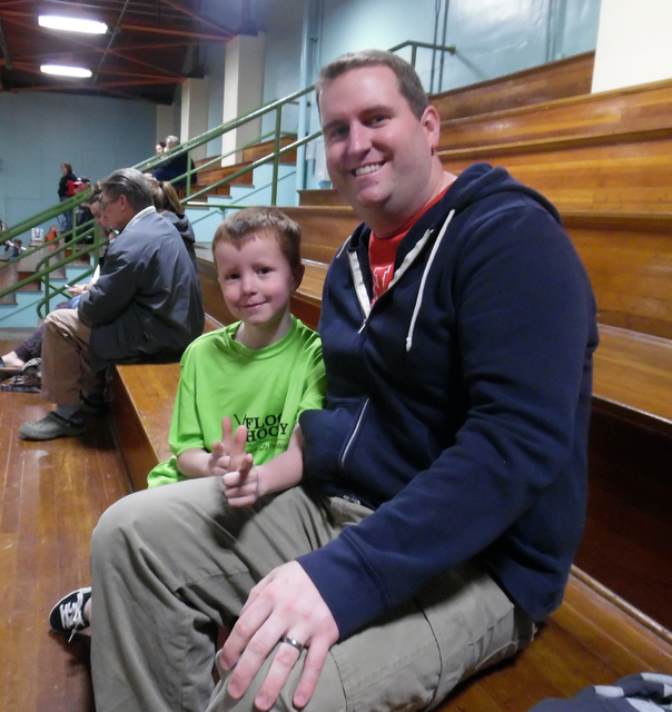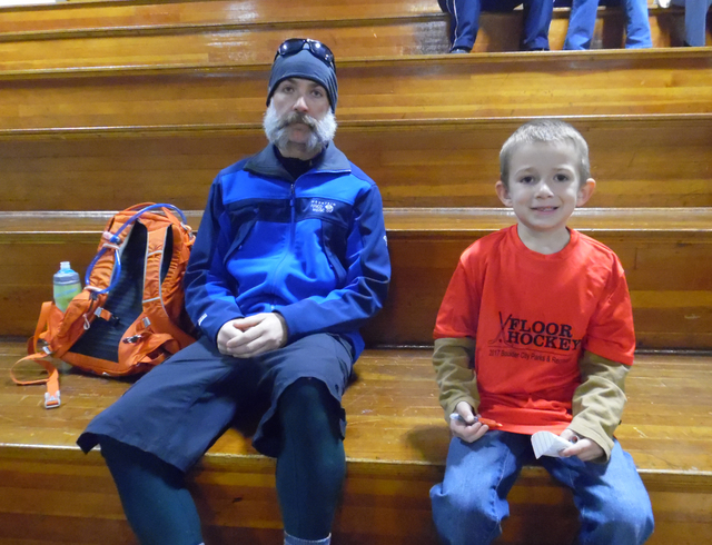 Ian Burr and T-Rex player Porter Burr attended the opening ceremony Saturday kicking off Porter’s second year of youth floor hockey.