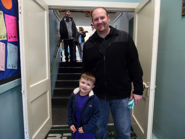 James, 4, and Mike Hiler attended the youth hockey opening ceremony Saturday at the Boulder City Recreation Center as James began his first year of hockey.