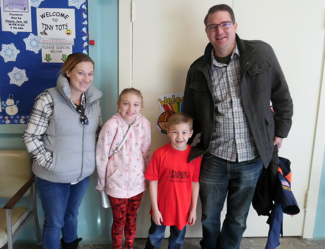 Sarah, Meghan, 9, Jack, 7, and Stephen Mealey attended the youth hockey opening ceremony Saturday at the recreation center gym, kicking off Jack’s second year playing floor hockey.