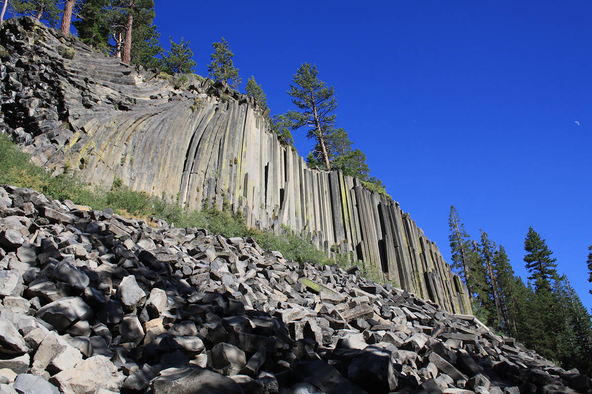 Mammoth Lakes, California, in the eastern Sierra Nevada Mountains, is the jumping-off place to visit Devil’s Postpile National Monument. The monument was established in 1911 to preserve a rare columnar basalt formation, as well as other natural features.