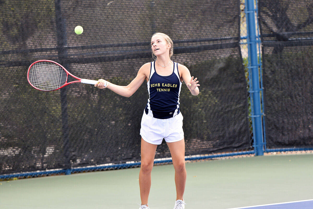 The Lady Eagles also earned three forfeit points in doubles play due to Adelson not fielding a third duo.